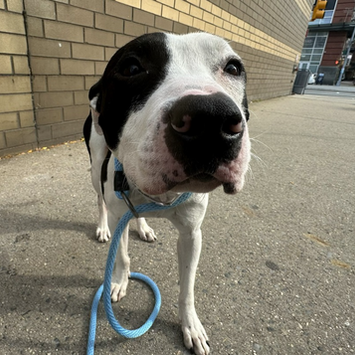 My boroughbreaker writes: We took a walk around Central Park and did a little sunbathing at the conservatory! He has a lot of energy and is super eager to sniff everything he can. The bustle of the city street was a little overstimulating for him, but once we got to sit down away from cars, runners, and bikes, he was very chill and started looking for pets, snuggles, and kisses. He really loved getting some time in the grass and leaves. Once you've established some trust, he happily responds to sit, paw, and lie down (for treats).